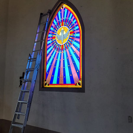 Esta combinación permitió lograr una definición excepcional en rostros, mantos y formas, dando vida y profundidad a cada imagen. Los vitrales fueron instalados en una iglesia ubicada en un bello rancho, donde la luz natural atraviesa los colores y detalles, transformando el interior en un espacio de recogimiento y celebración.